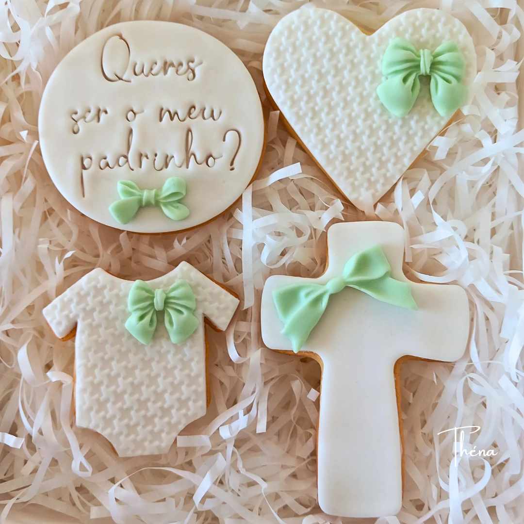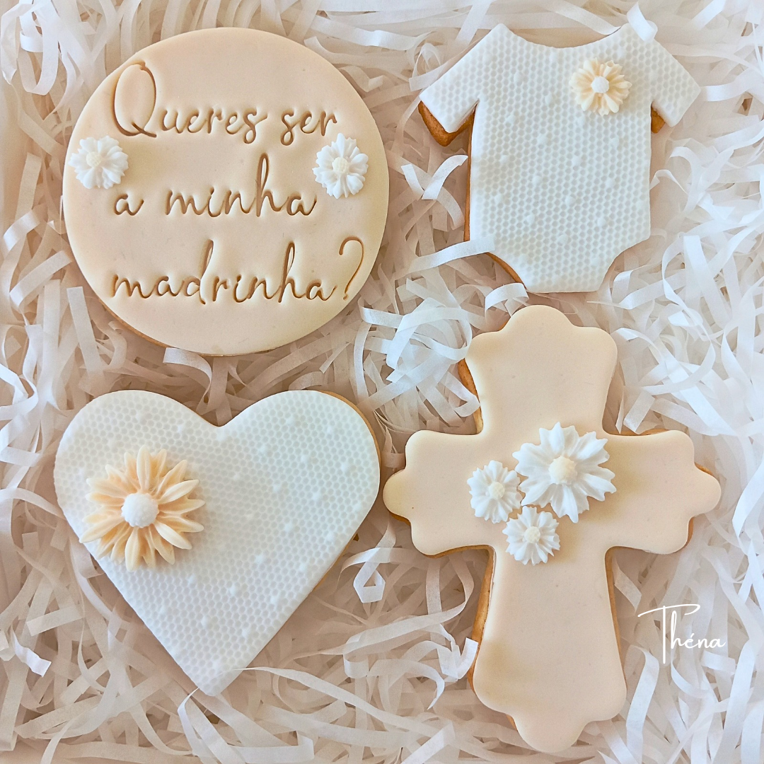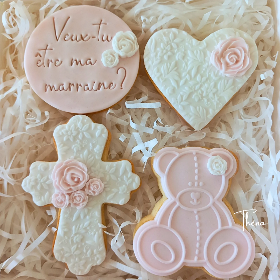 Un cadeau original pour faire votre demande pour le futur baptême de votre enfant. Créez un instant unique avec ces biscuits élégants et délicieux.