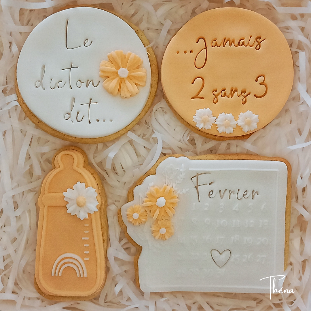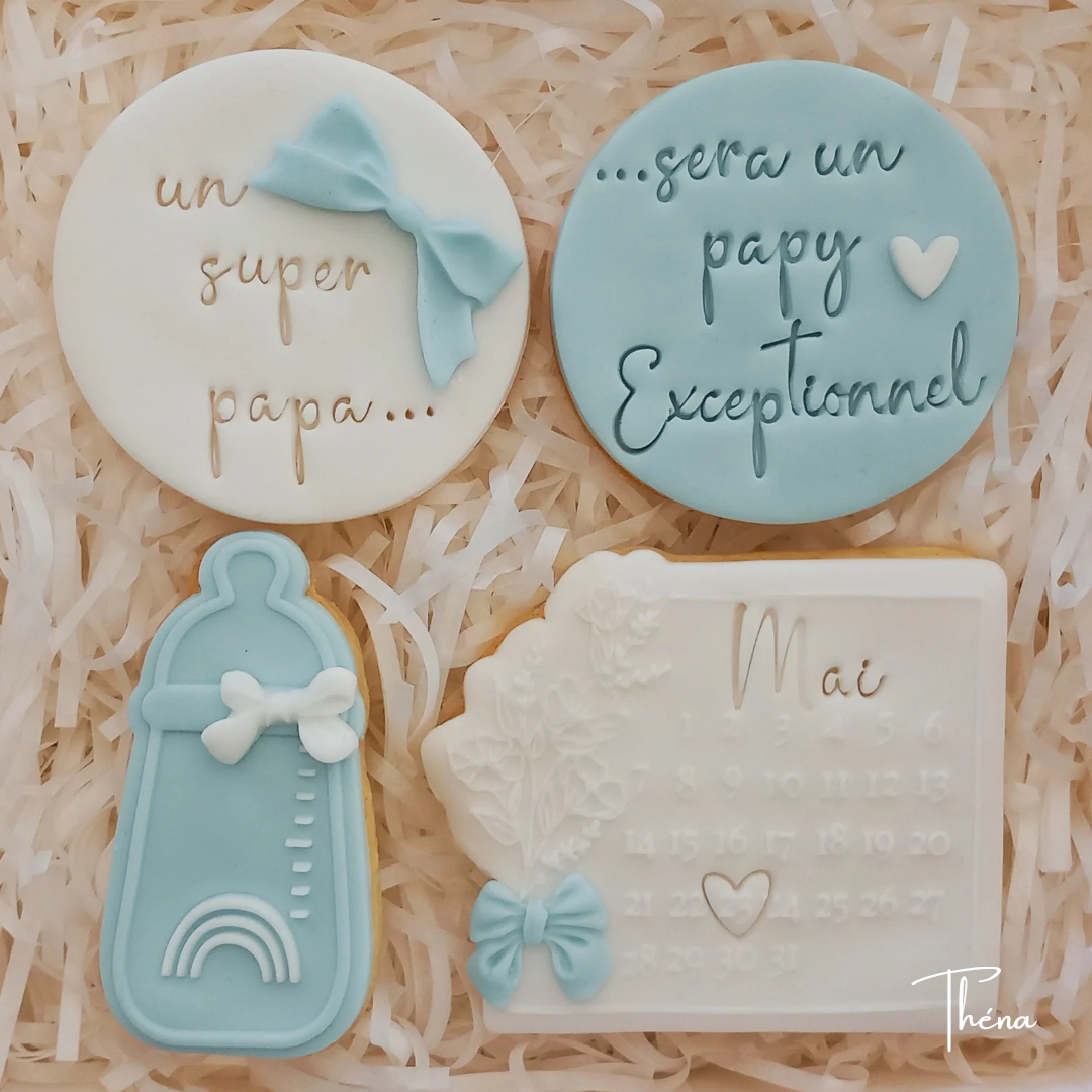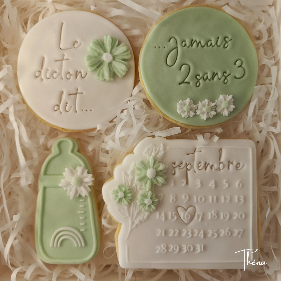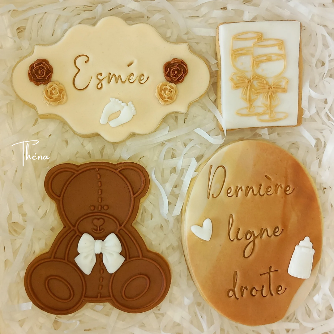 Un cadeau original pour annoncer votre grossesse à vos proches. Créez un instant unique avec ces biscuits élégants et délicieux. Vous souhaitez annoncer la nouvelle le plus rapidement possible, nous pouvons réaliser vos boîtes sous 72 heures !