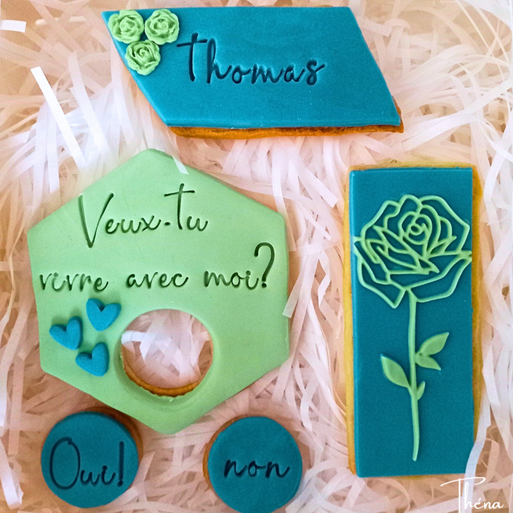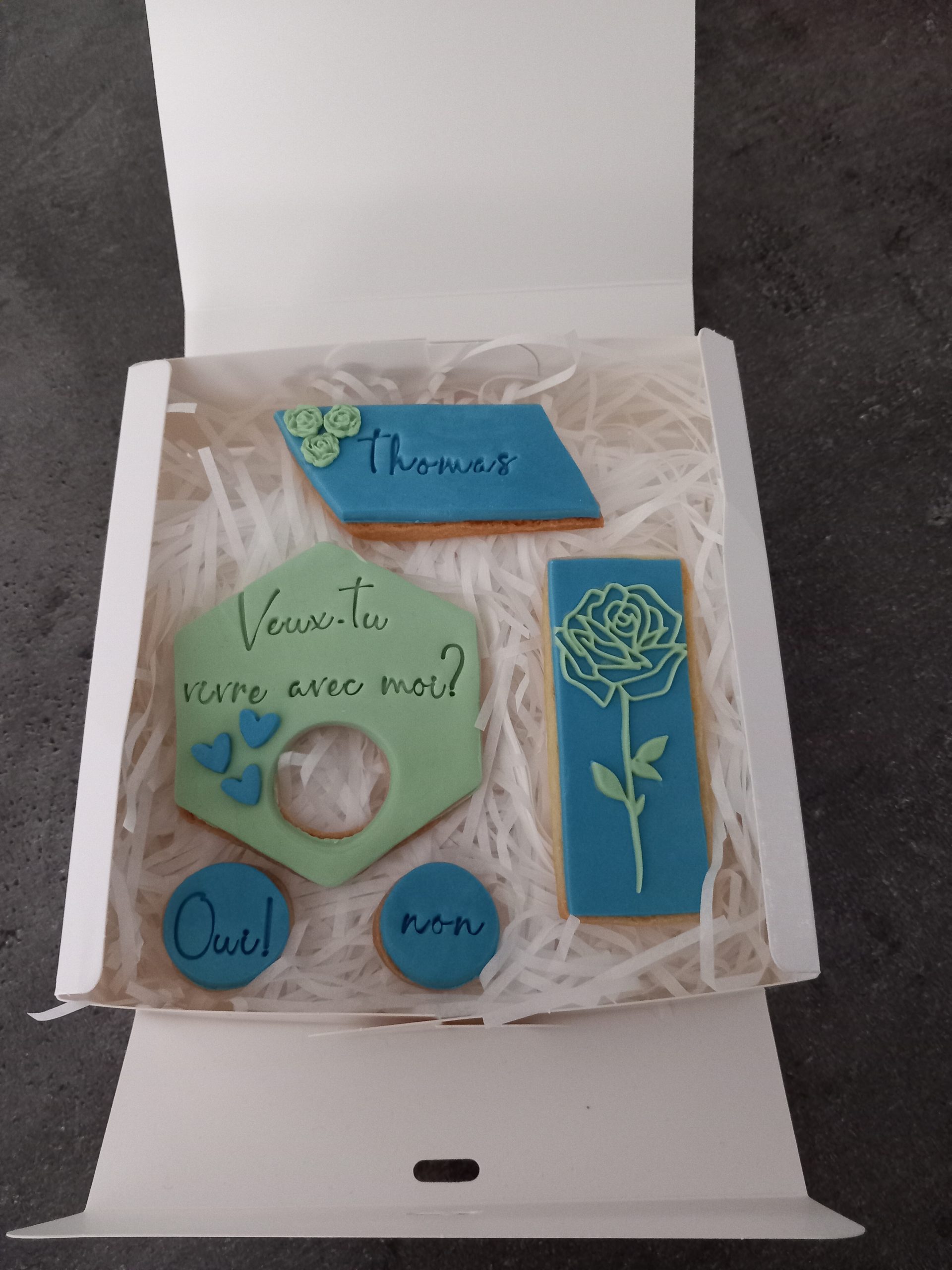 Un cadeau original pour faire votre demande d’emménagement à votre double. Créez un instant unique avec ces biscuits élégants et délicieux.